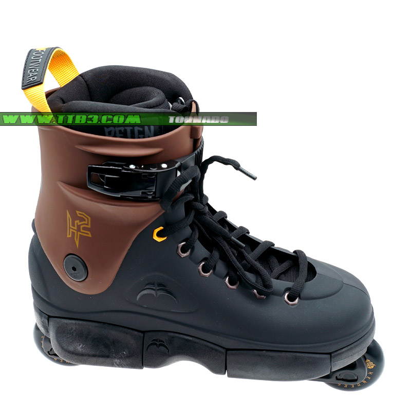 REIGN V3 Henderson Liner内靴,包裹性和舒适性都非常出色,RAZORS SL 系列镂空外壳,这是一款非常成熟的外壳,它的结构设计堪称精美,轻便耐用,卡台感纯碎,并且它拥有极限轮滑鞋中超级减震,硅胶打造,镶嵌在鞋壳内,咖啡色与黑色的巧妙结合,让Henderson非常喜欢,64mm的GC专业极限轮搭配原装ABEC9轴承,速度与弹性耐磨性都非常好 ,虽然是64毫米轮子由于SL底板有凹槽,实际重心达到负值,也就是说轮子的一部分是镶在鞋壳内的,这样的设计已经不能光用紧凑来形容了,RAZORS的特点本身就是稳,再加上这样的负值重心和镂空外壳,将低重心做到了超级 ,仍然采用了国际USF通用系统,模块式组装,任意拆卸改装,龙卷风极限为大家推出了各种风格的改装版本,刷机/平花/冰刀/大三轮/山地 应有竟有,希望滑手们喜欢