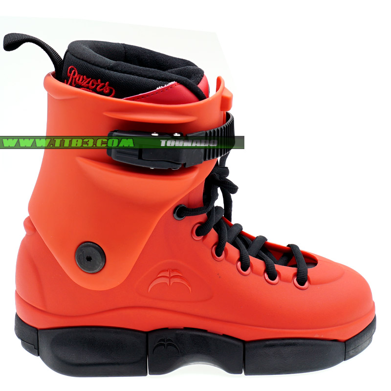 整体红色的配色,这应该是目前RAZORS最红的一款配色了,装配的FLT3刀架也是红色,UFS通用系统,57mm 92A GC轮子,SL鞋身搭配FLT3刀架,老滑手都知道,这是一个高性能组合